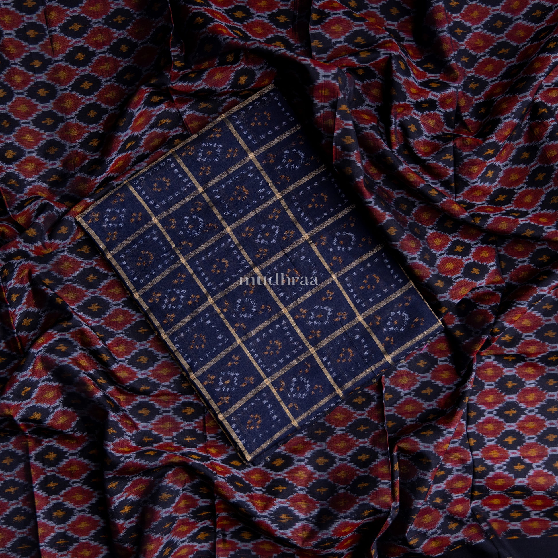 BLACK & MAROON HANDWOVEN IKKAT SUIT SET