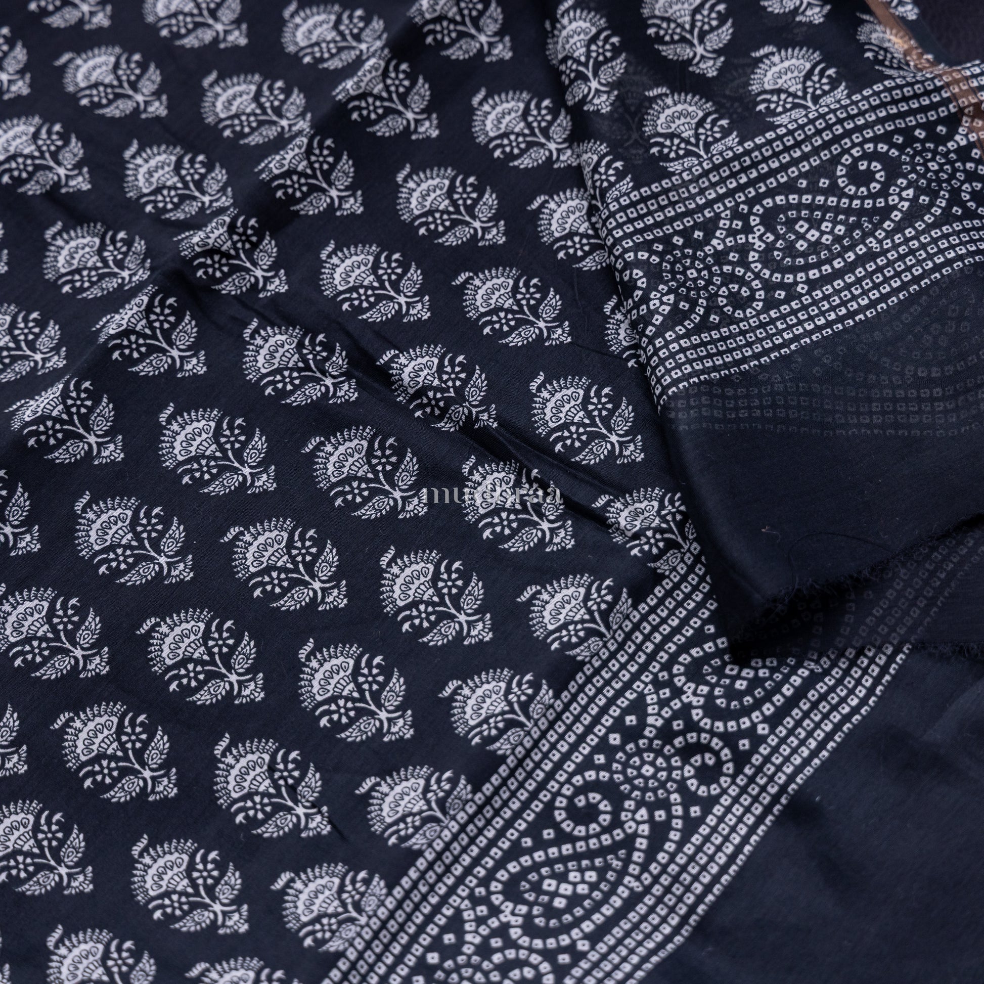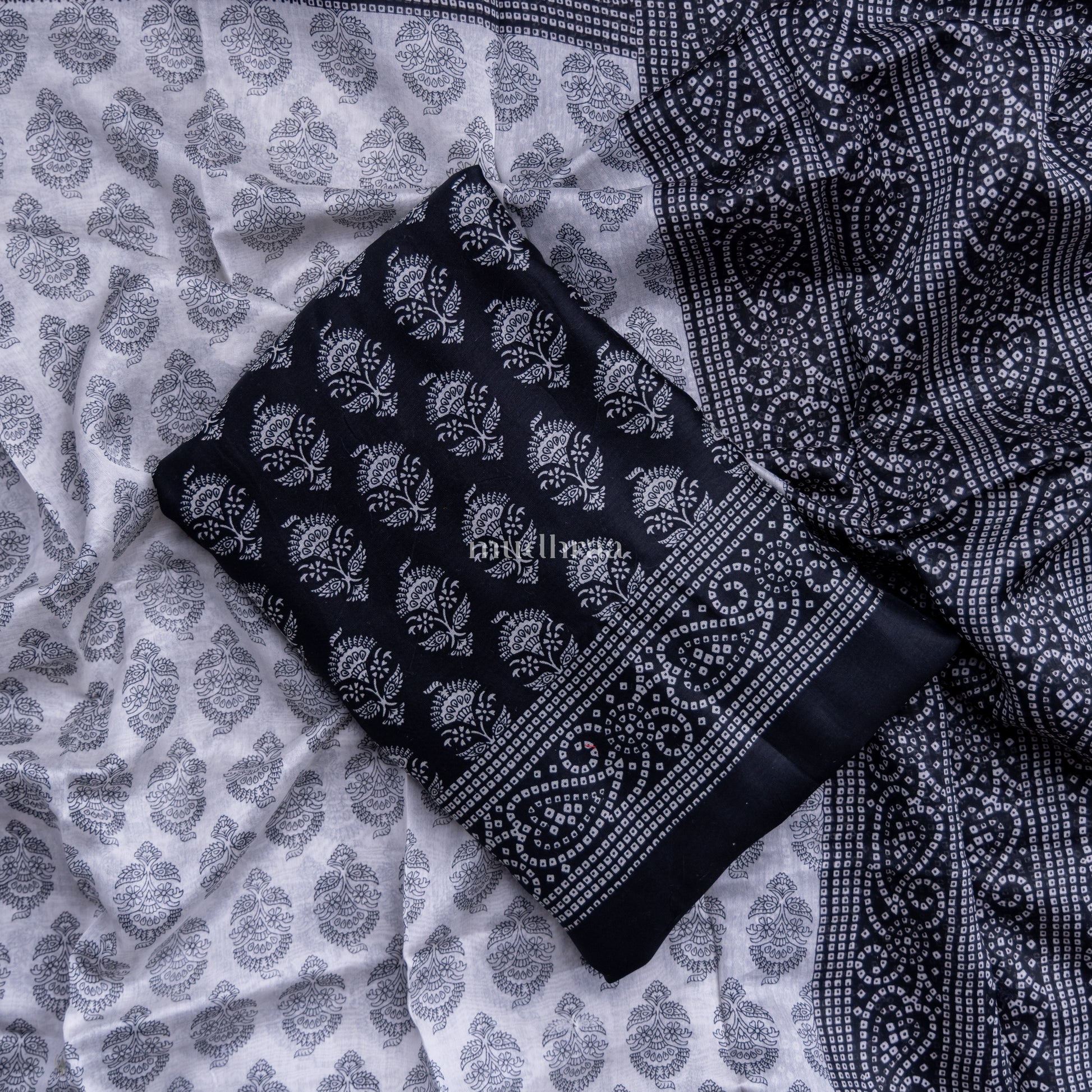 BLACK & WHITE PRINTED CHANDERI SUIT SET