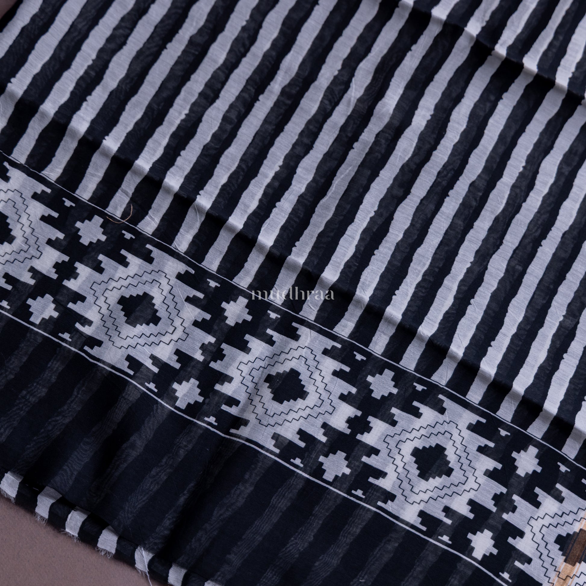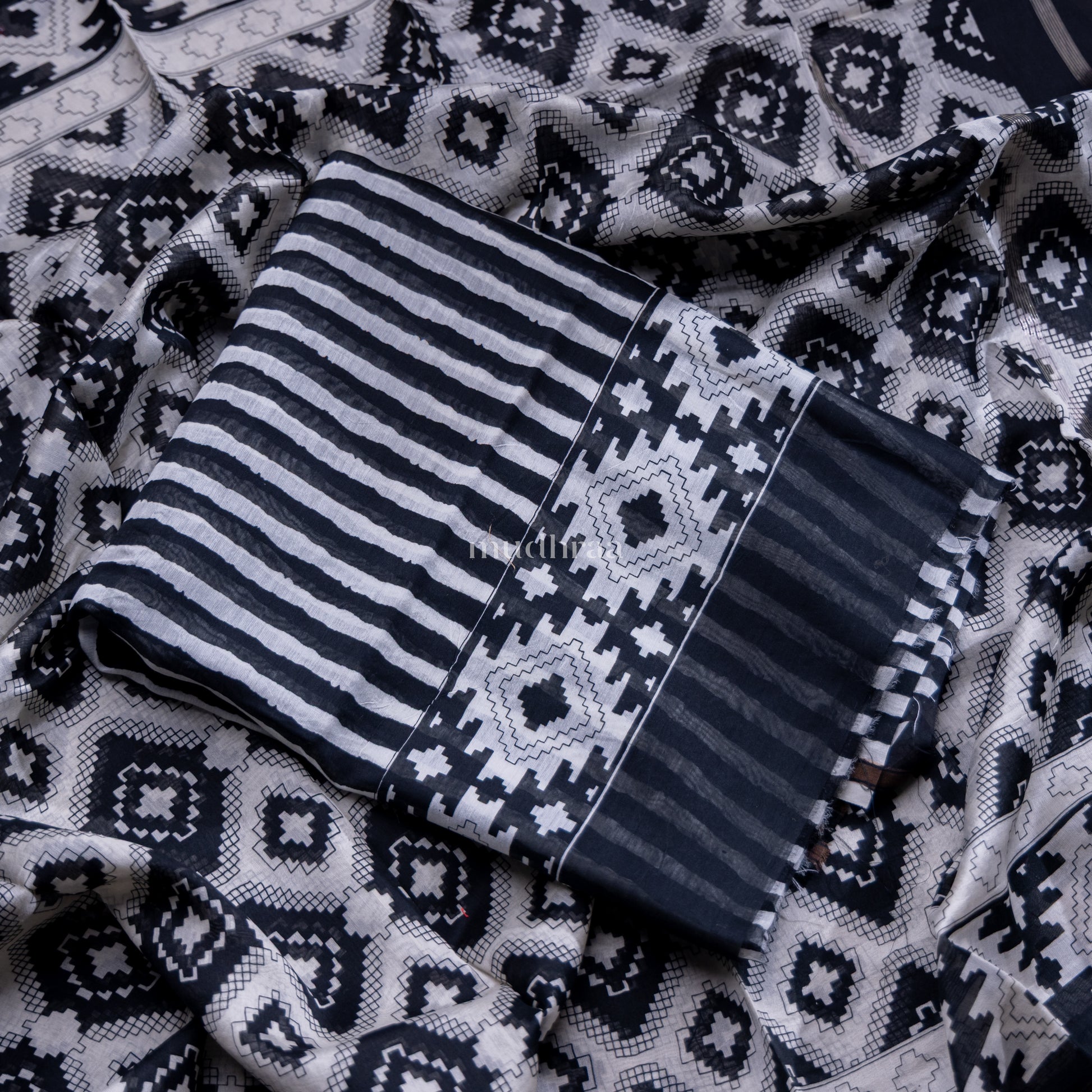 BLACK & WHITE STRIPED CHANDERI SUIT SET