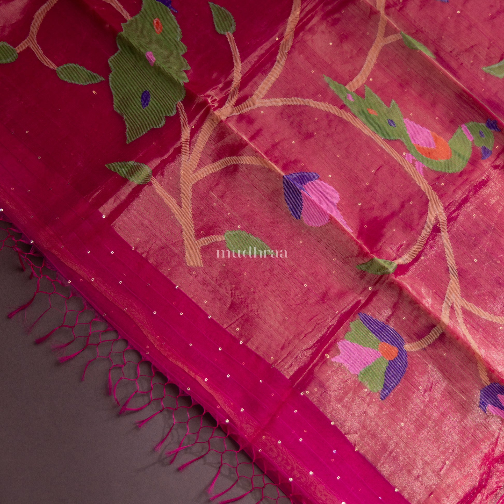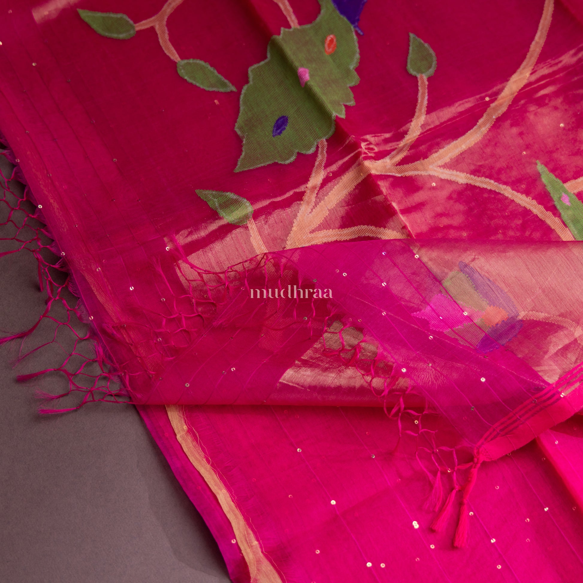 RANI PINK HANDWOVEN PAITHANI MUSLIN SILK SAREE