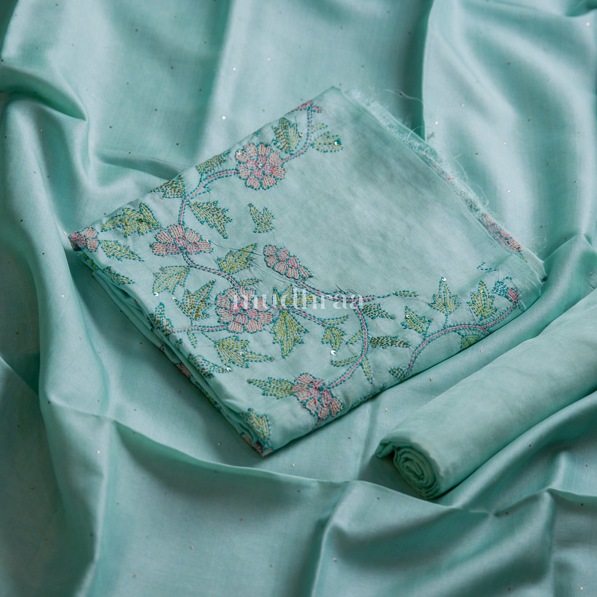 ICE BLUE KANTHA SEQUIN TUSSAR SUIT SET