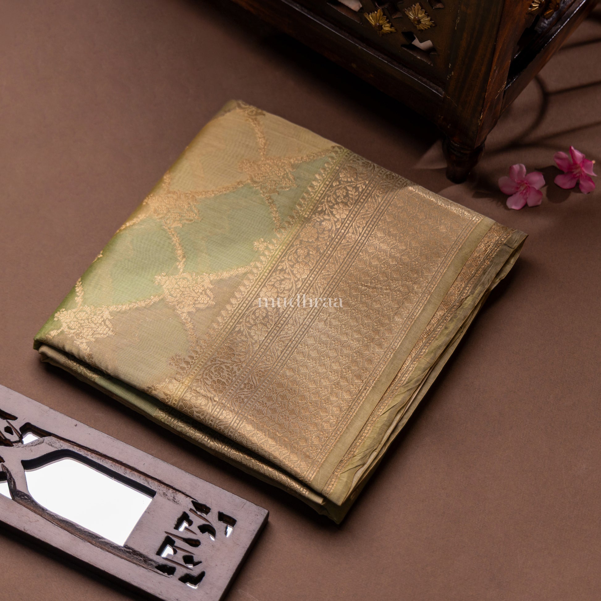LEAF GREEN RANGKHAT CHANDERI SILK SAREE