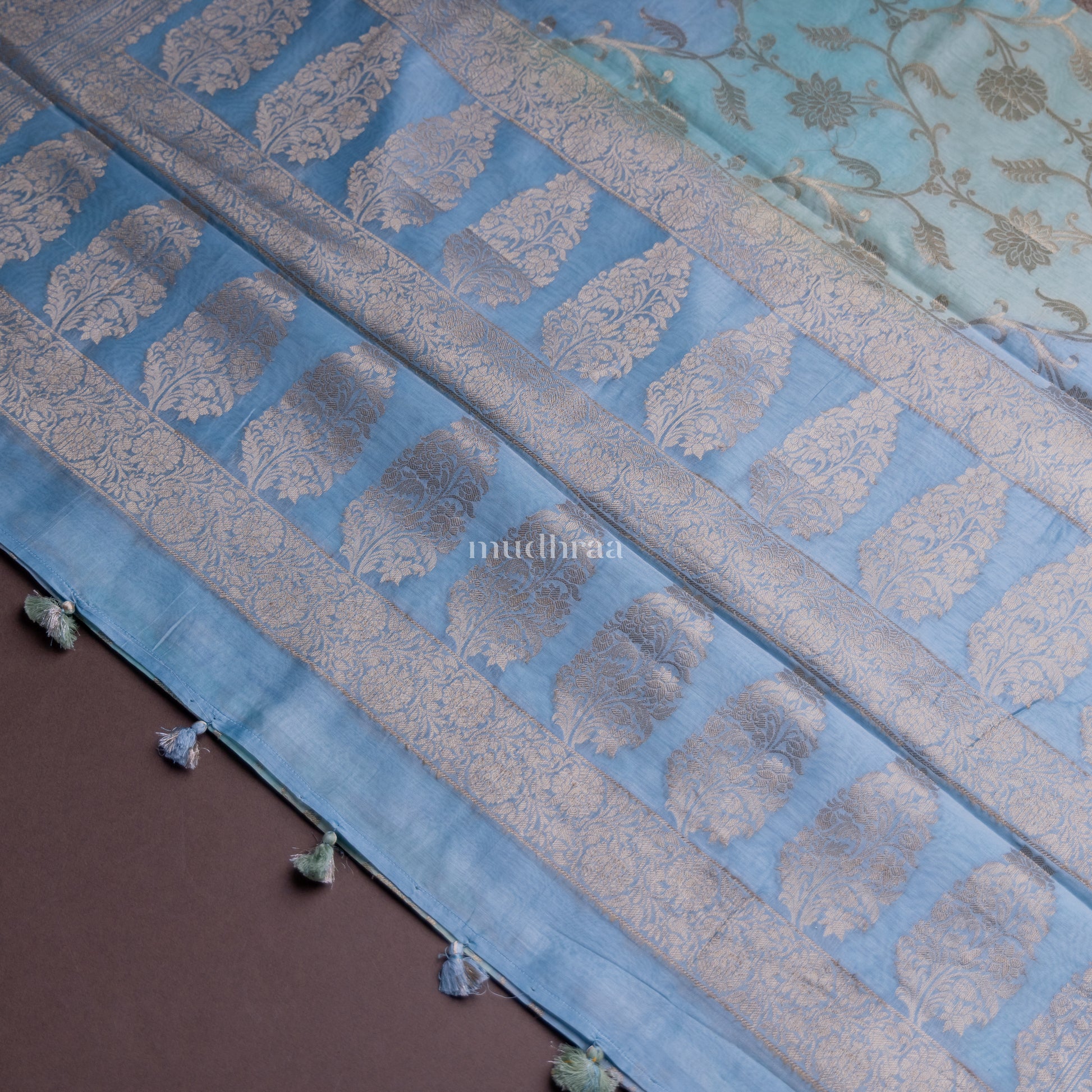 BLUE GREEN RANGKHAT CHANDERI SILK SAREE