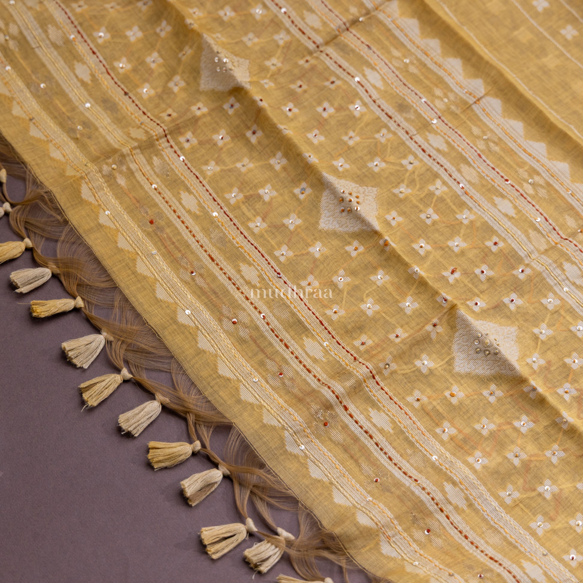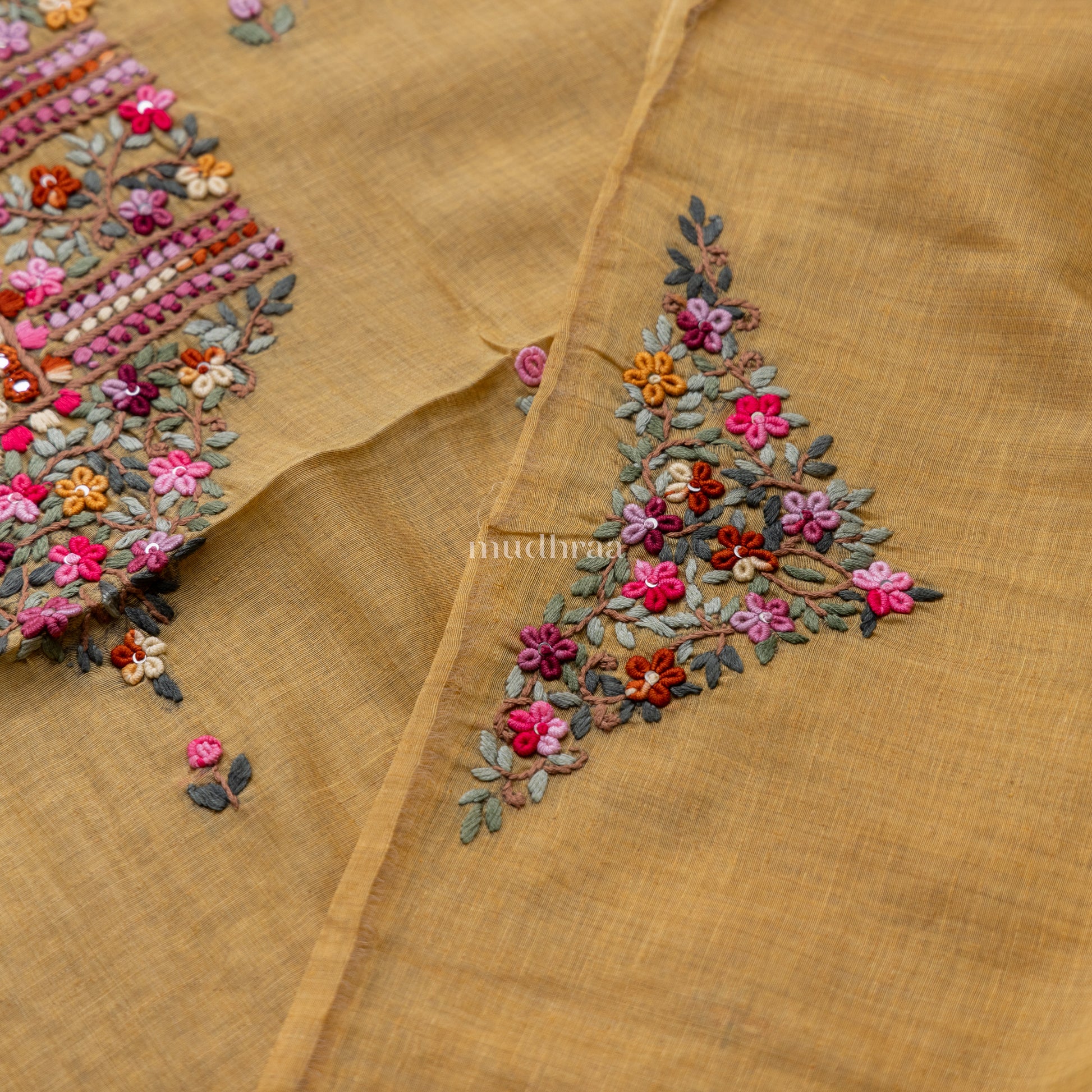 MUSTARD CHANDERI PHULKARI SUIT SET