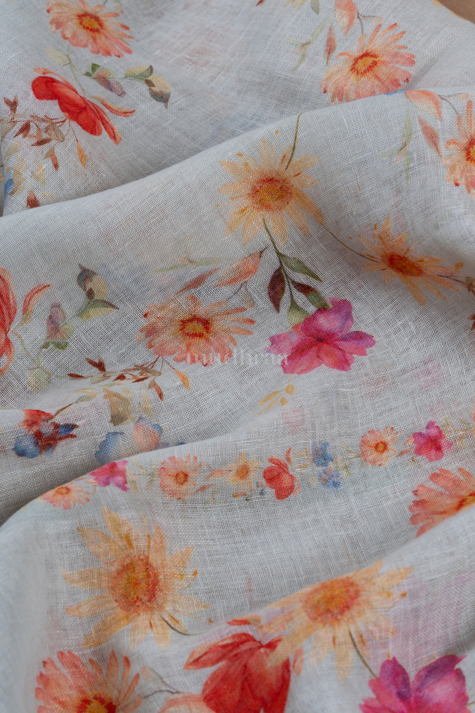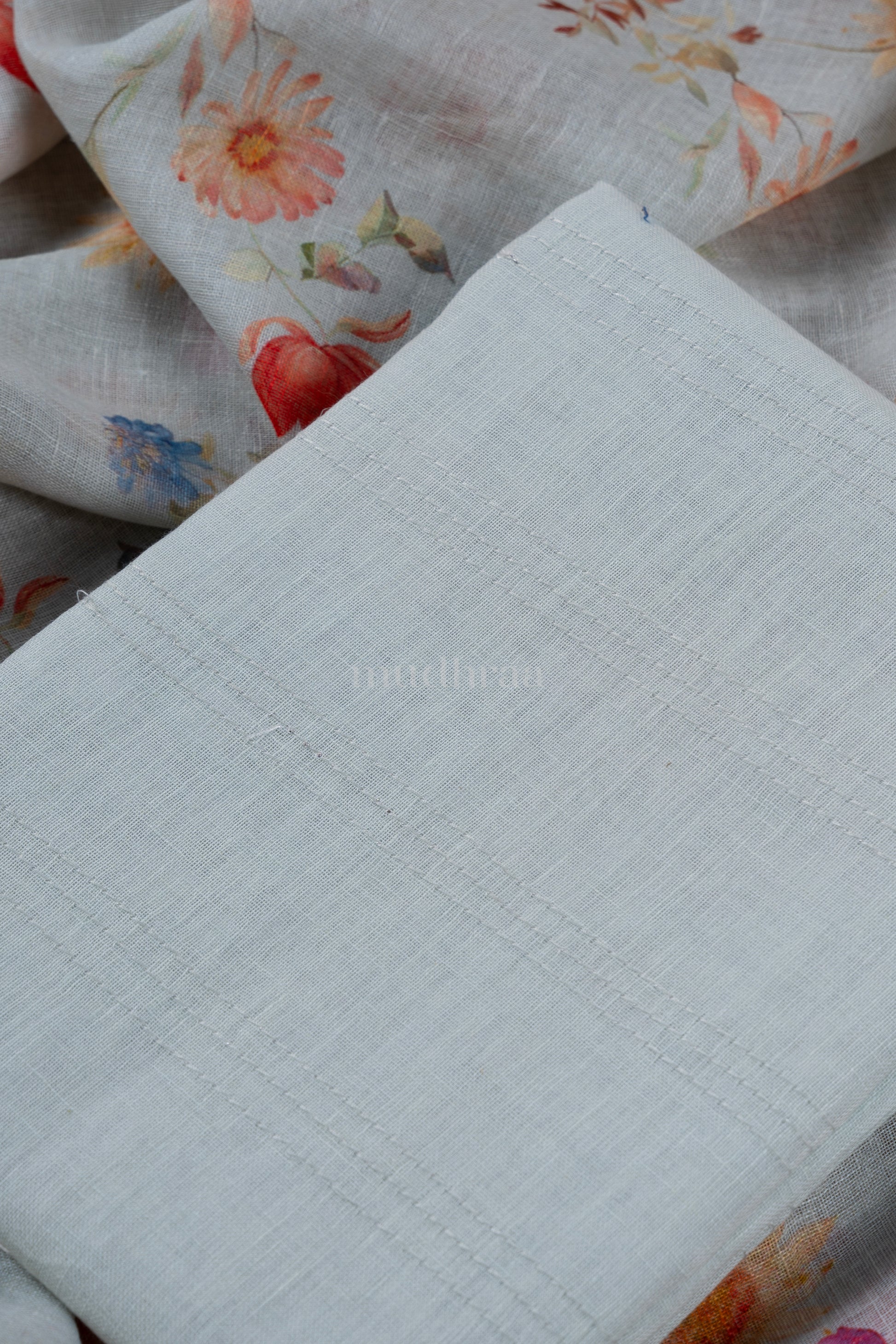 Pure linen embroidered pastel pink top with digital printed pure linen dupatta. (2 pc set)