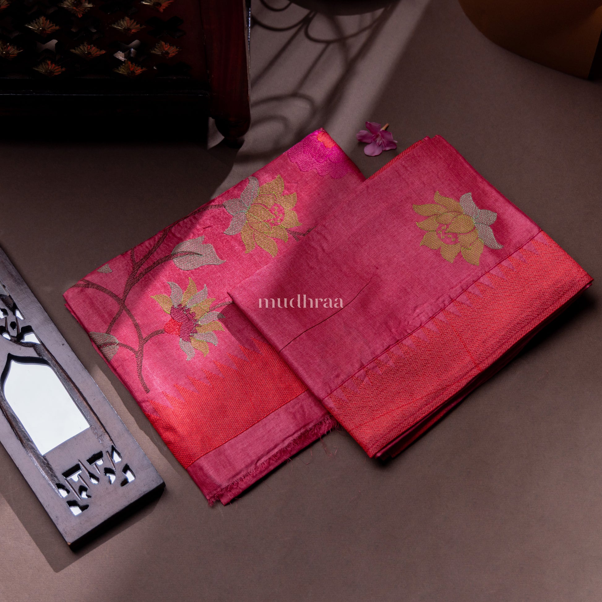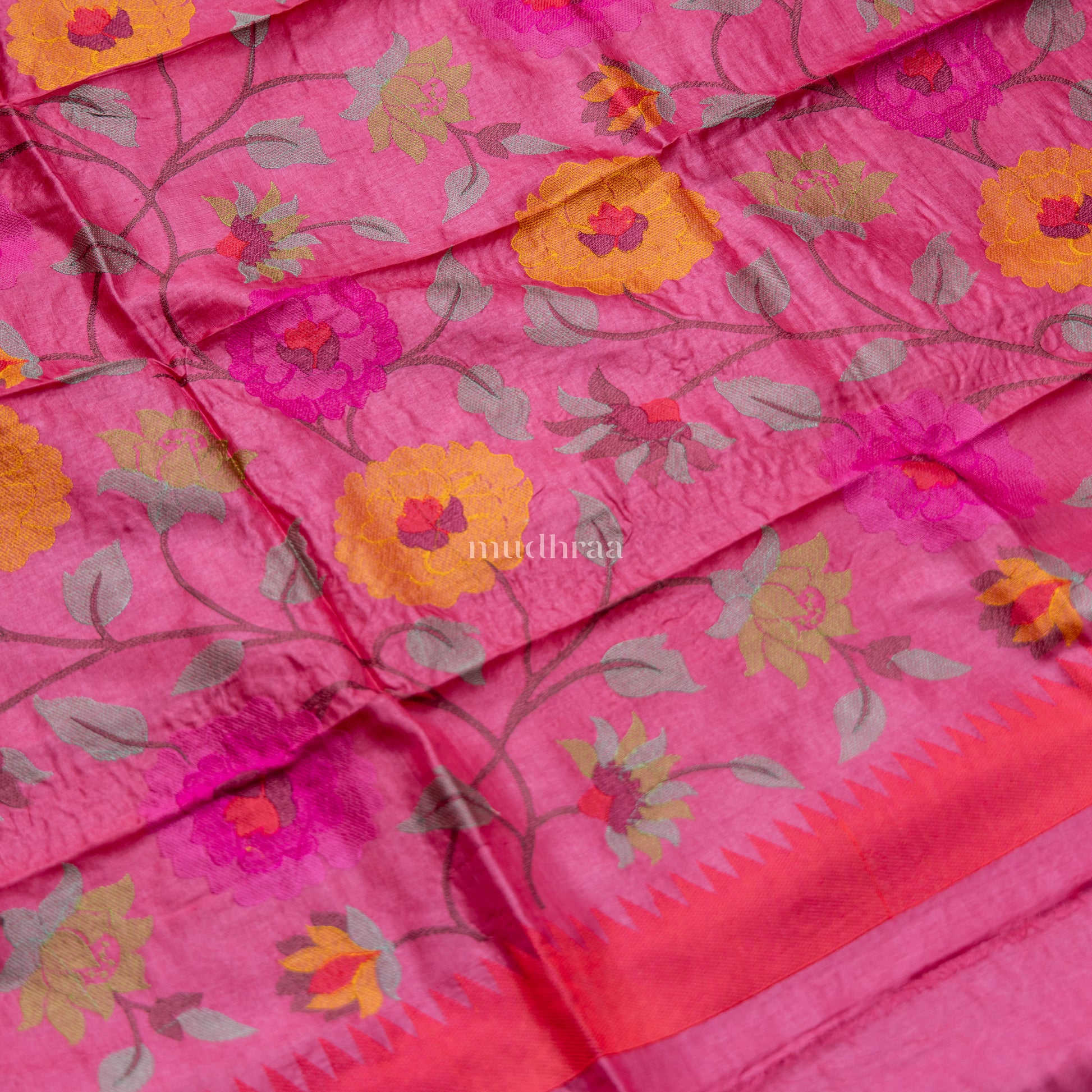 All over floral embroidered pure tussar suit set perfect for occasions.