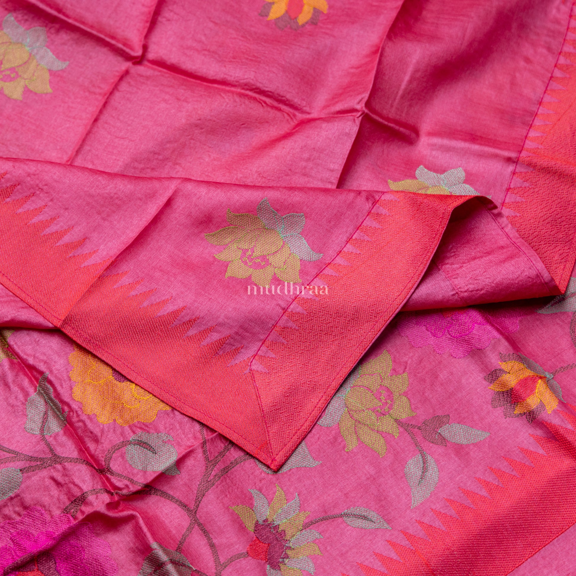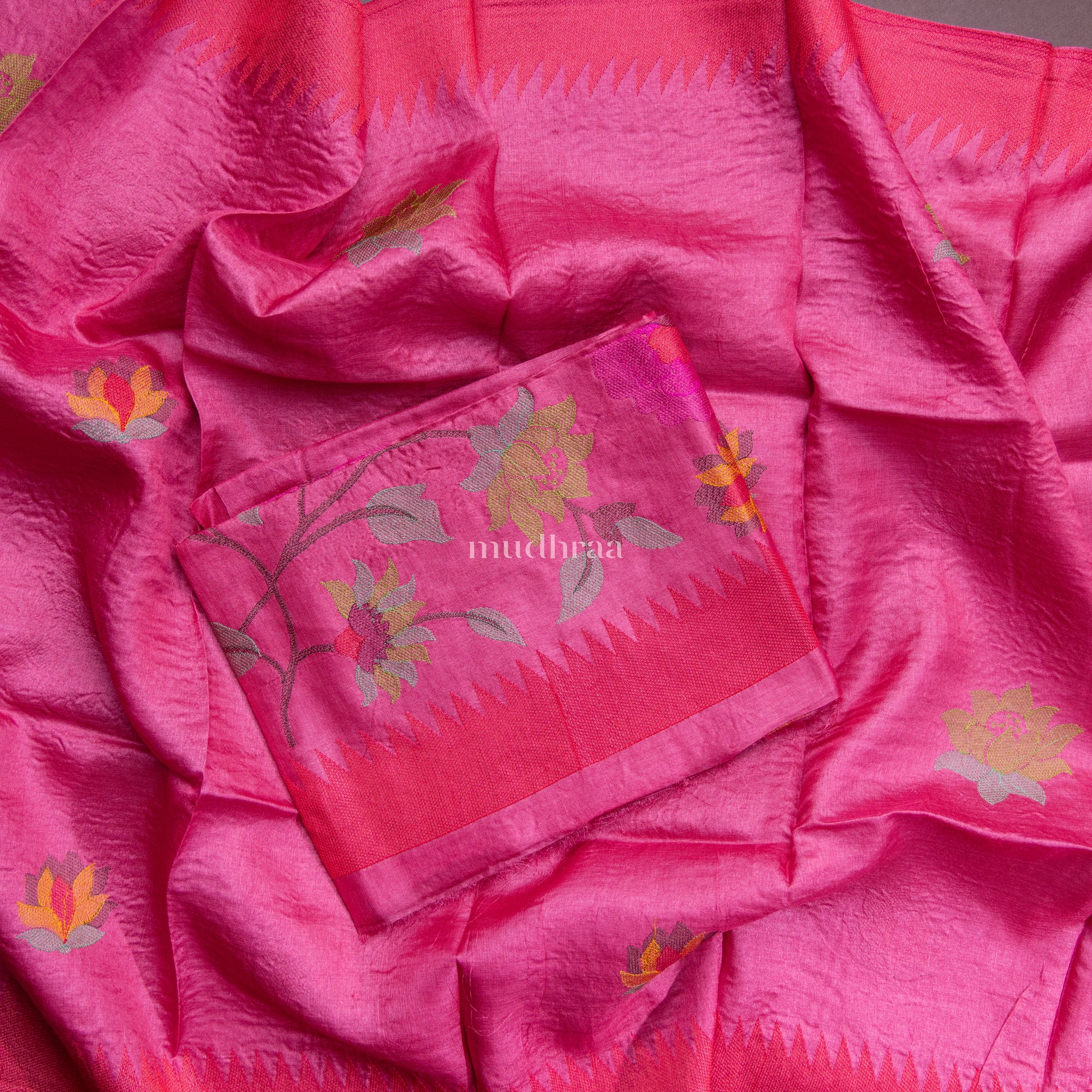 RANI PINK EMBROIDERED TUSSAR SUIT SET