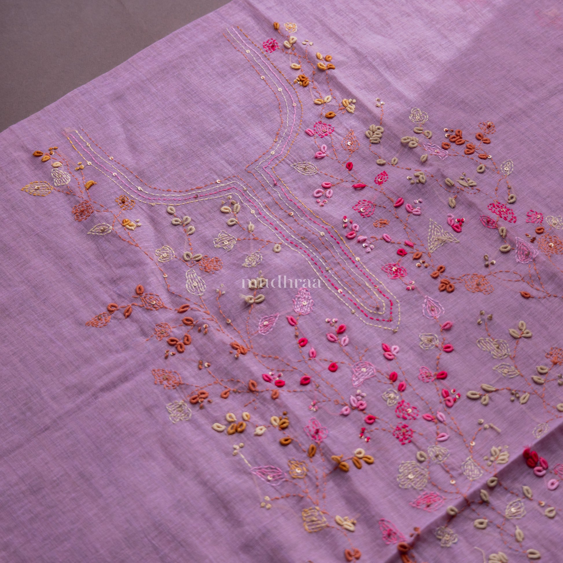 LILAC EMBROIDERED CHANDERI SUIT SET