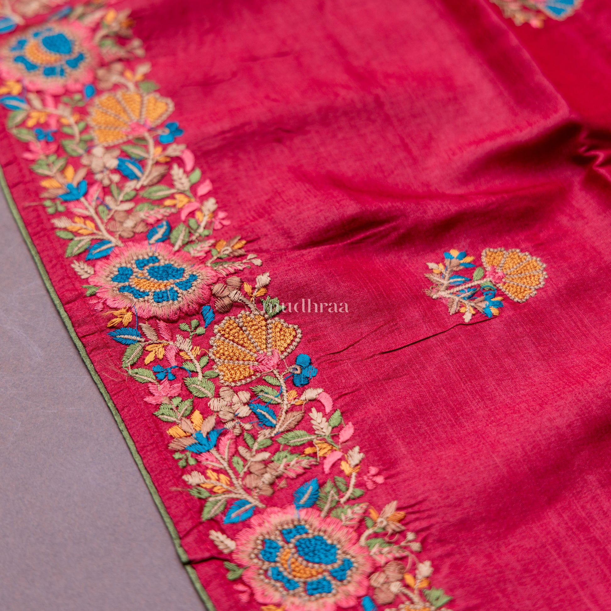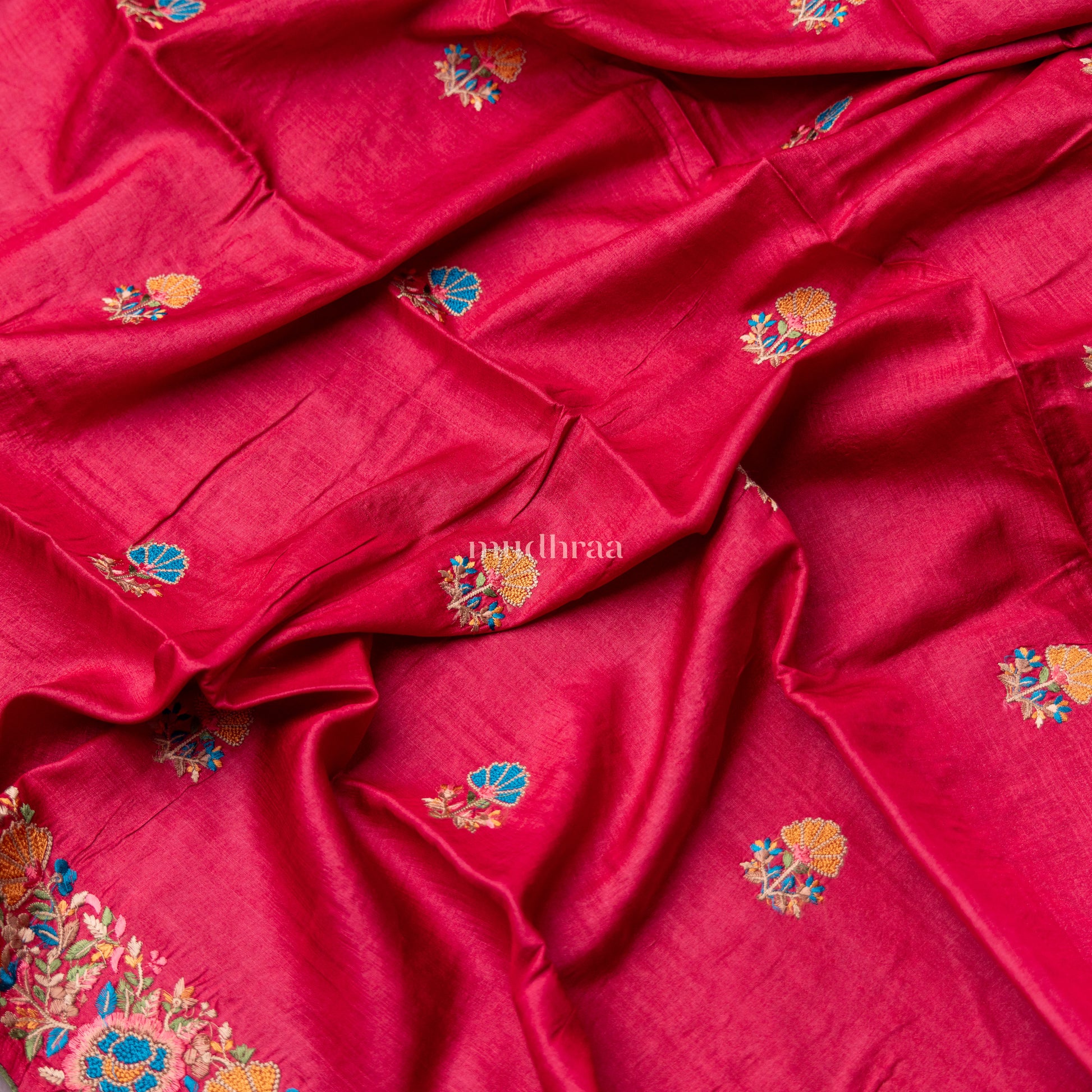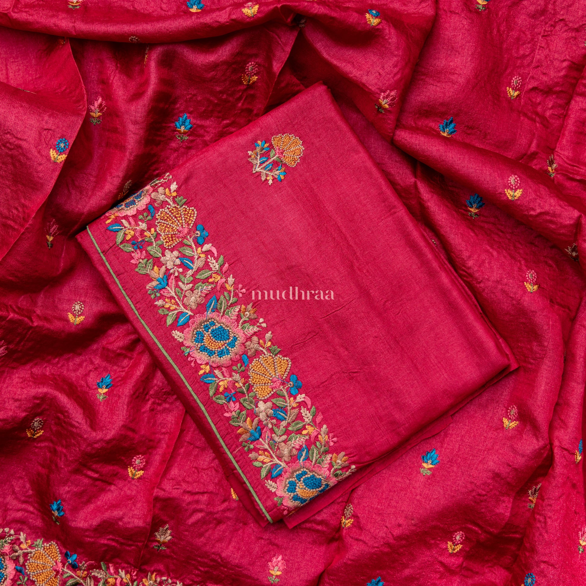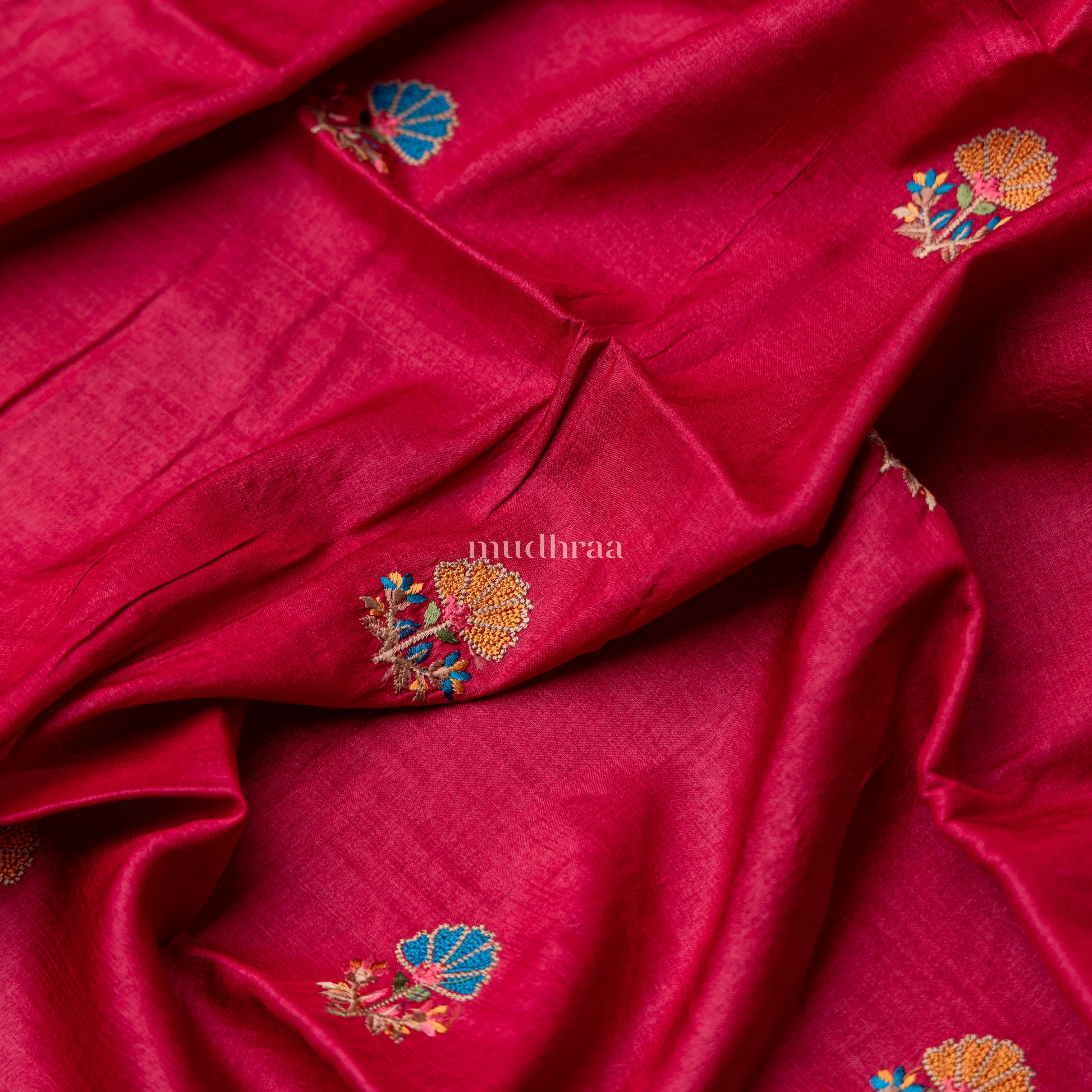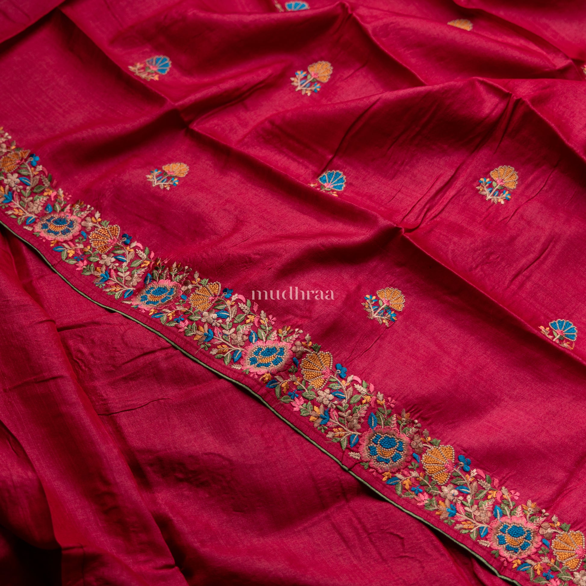 SCARLET RED TUSSAR EMBROIDERED SUIT SET