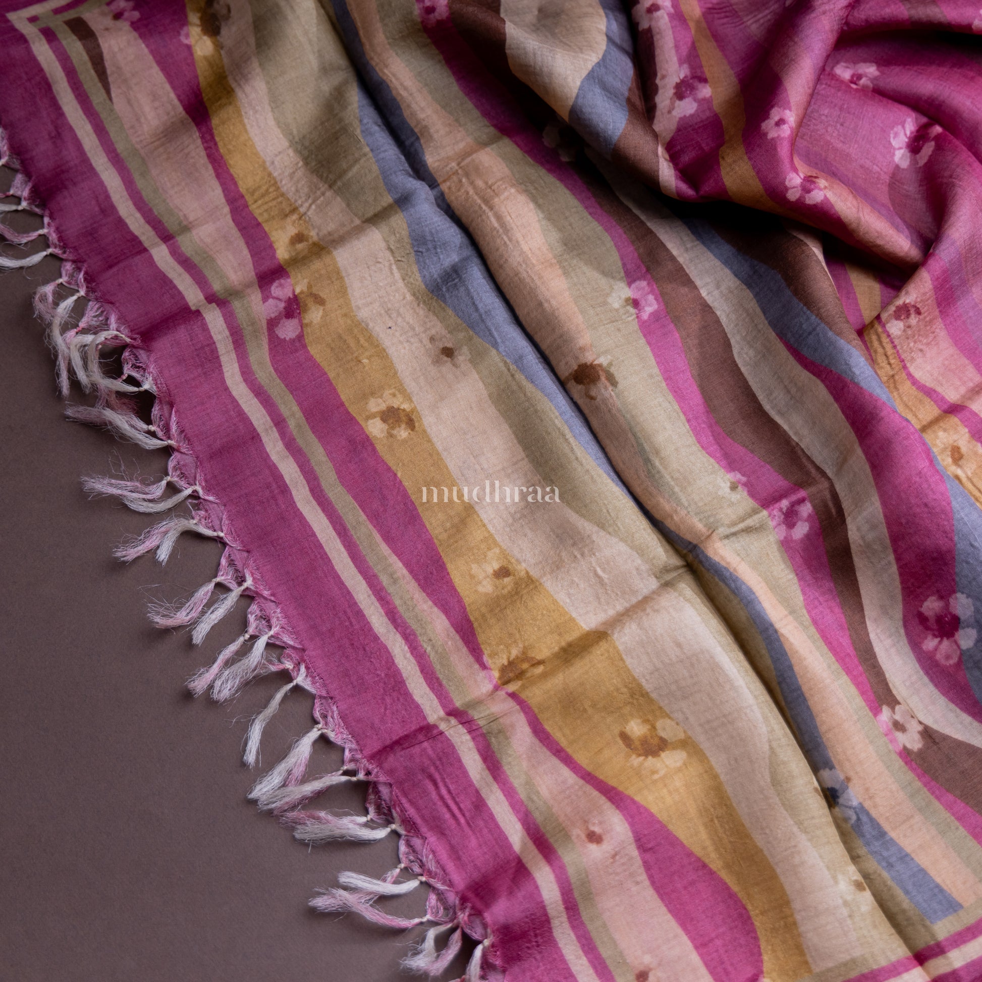 STRIPED FLORAL PRINTED TUSSAR SUIT SET